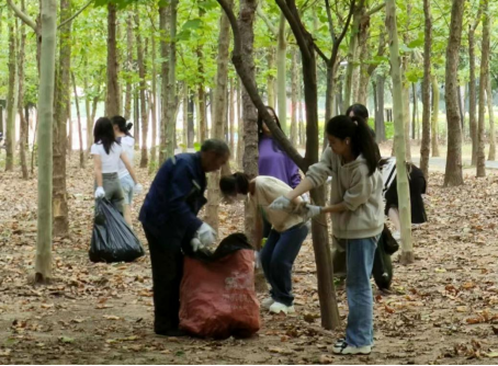 大家分工明确,有的拿着扫帚,仔细地清扫着地面上的落叶和灰尘;有的戴着手套,耐心地捡起散落在草丛中的白色垃圾;还有的齐心协力搬运着教学楼、宿舍楼周边的枯木树枝。他们不畏脏污,即使手上沾满了泥土也毫不在意;不惧劳累,额头上冒出细密的汗珠也顾不上擦拭。在劳动的过程中,师生们还不时交流着,分享着劳动的快乐和对校园的美好憧憬。